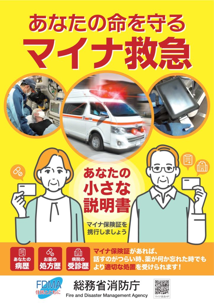 マイナ救急とは、救急隊員が傷病者のマイナ保険証(健康保険証利用登録をしたマイナンバーカード)を活用し、傷病者の医療情報等を閲覧する仕組みのことです。